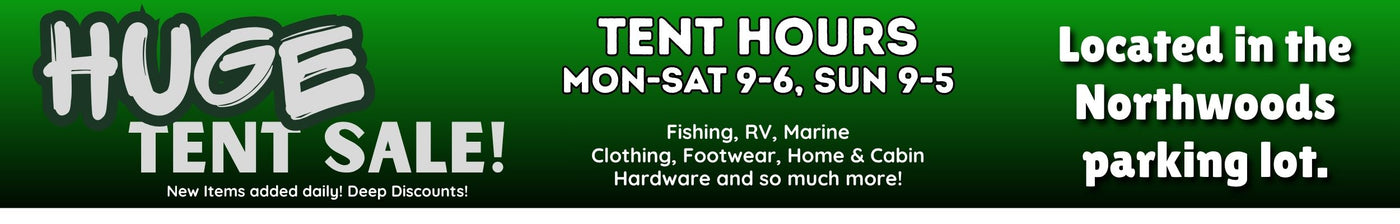 Clearance Tent Hours:Monday - Saturday: 9am - 6pmSunday: 9am - 5pm
