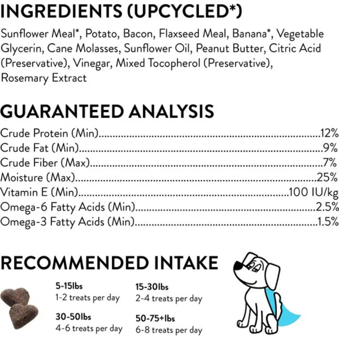 Serve your sidekick a new kind of snack with Shameless Pets Soft Baked Bananas for Bacon Grain-Free Dog Treats. These all-natural treats for dogs are formulated with sweet bananas, real bacon and a hint of peanut butter to help support skin and coat health. They are crafted using upcycled ingredients that do not contain any grain, corn or soy. These delicious dog treats for skin and coat health are paw-fect for limited-ingredient diets and can be served to all breeds of dogs in any stage of life.