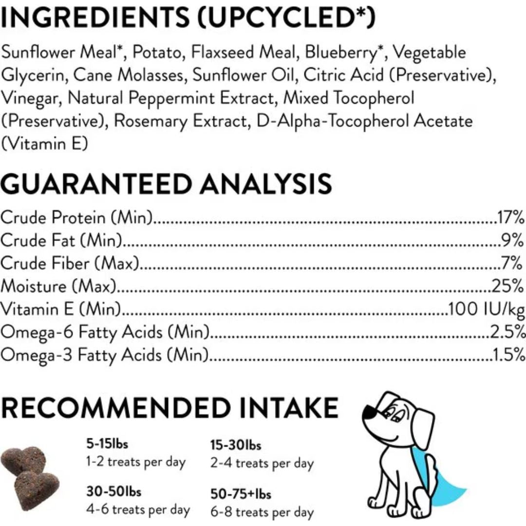 • Crafted using upcycled ingredients that do not contain any grain, corn or soy.
