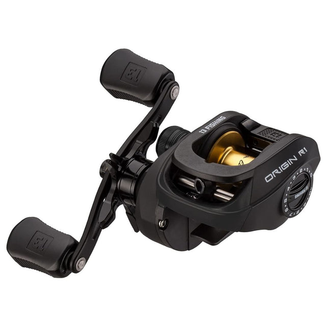 The 13 Fishing Origin R1 Baitcast Reel is our newest addition to our performance-driven, reasonably priced line up of casting reels. With 18 lbs. of Max Drag, and Fastback Frame Design the R1 sacrifices nothing and puts all the features in your hand to put fish in the boat. The R1 is a highly capable caster with the MCS - Magnet Control System and a fierce fighter with Instant Stop Anti-Reverse and reliable heart of 5 Total Ball Bearings.