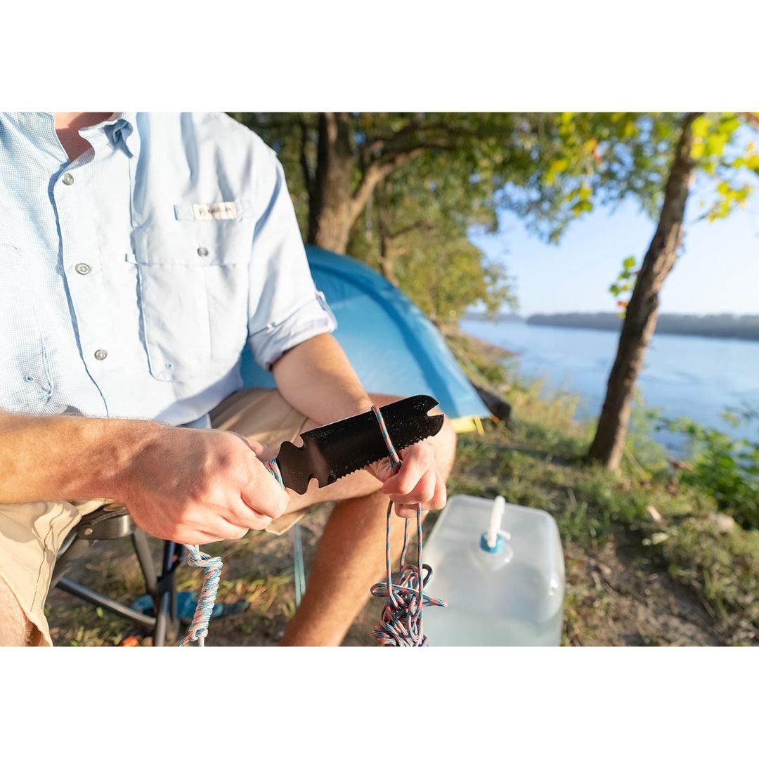 • BE PREPARED: Be ready in any situation with the paracord, line cutter, tent peg pry tool, flint fire starter and an integrated whistle