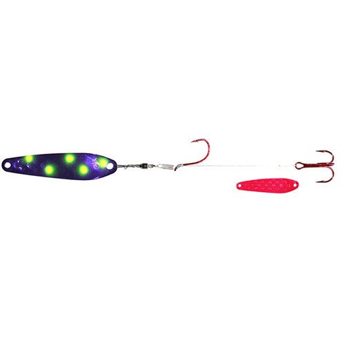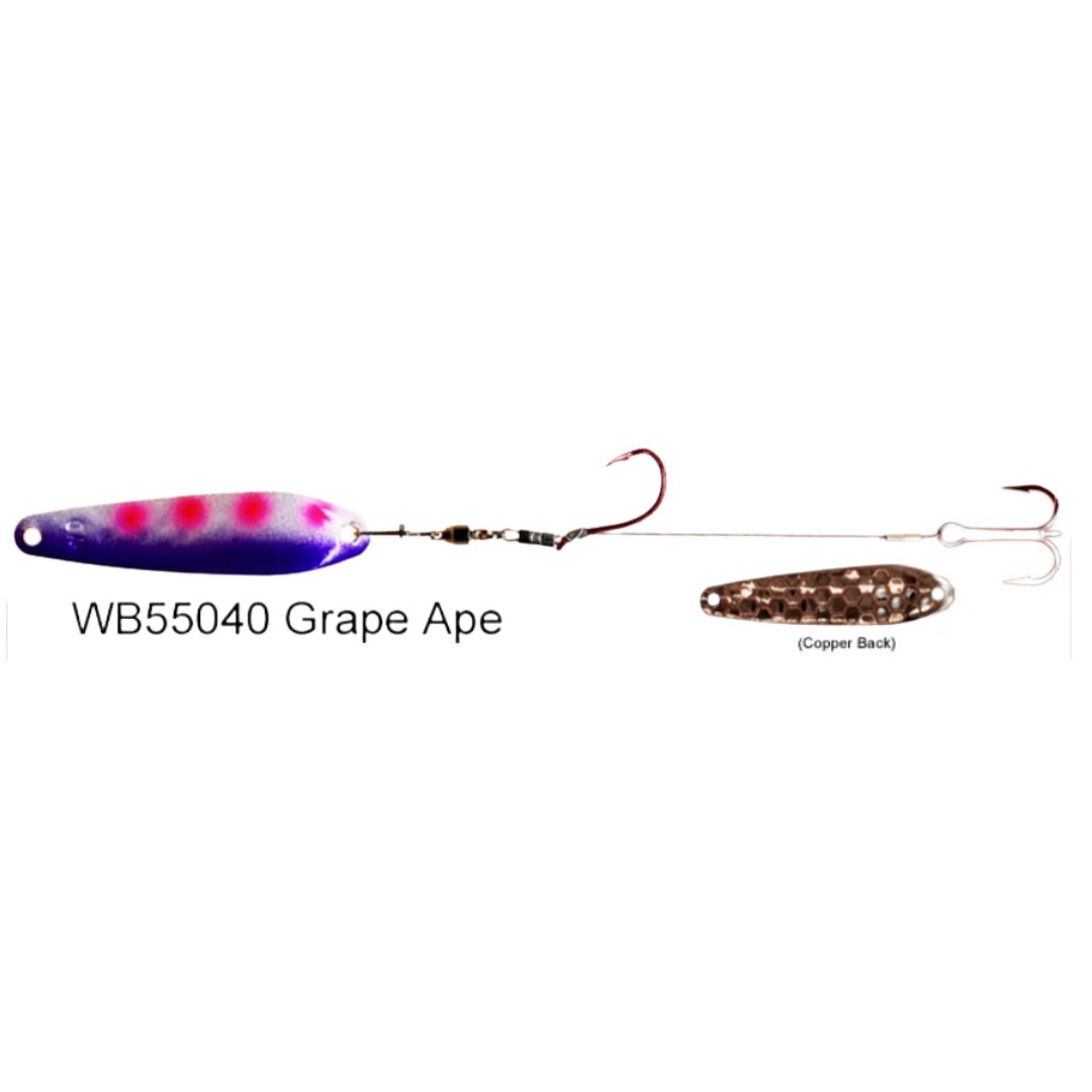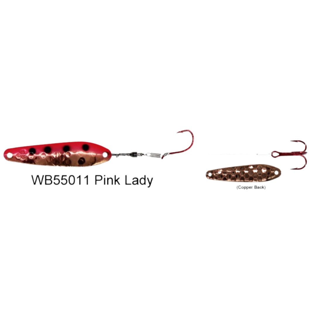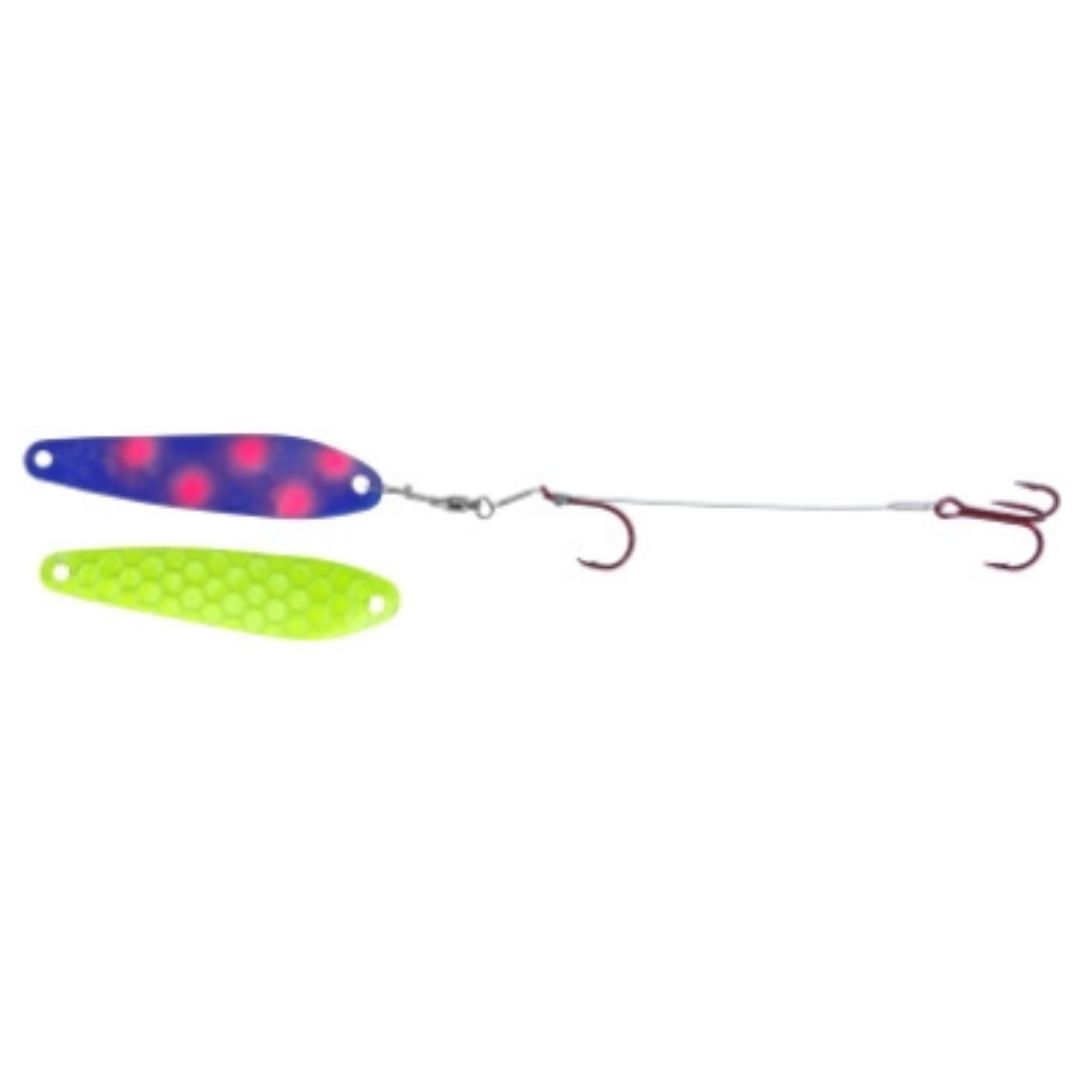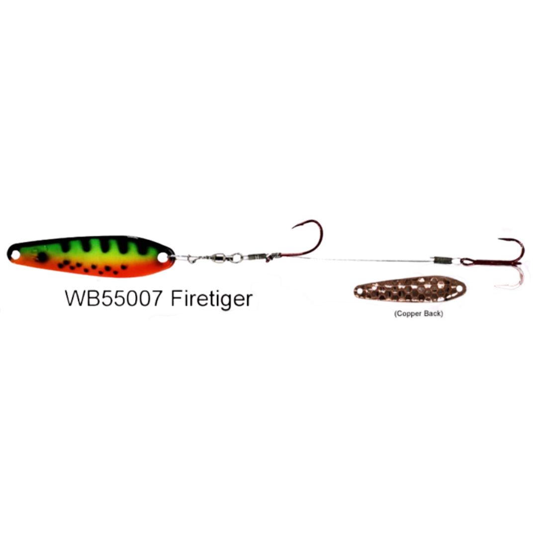 Dreamweaver Wormburners combine a Dreamweaver WD Series trolling spoon with standard wire crawler harness giving the angler a whole new bait design that fish have never seen before. Unlike other crawler harnesses that have to be trolled at very slow speeds, the Wormburner allows you to troll up to 4 mph! Because of this, the Wormburner can be trolled with crank and stick baits and spoons, baits that traditionally are trolled at faster speeds. Wormburner live bait harnesses features a ball bearing swivel and a single size two red octopus hook with a size four red treble hook stinger.