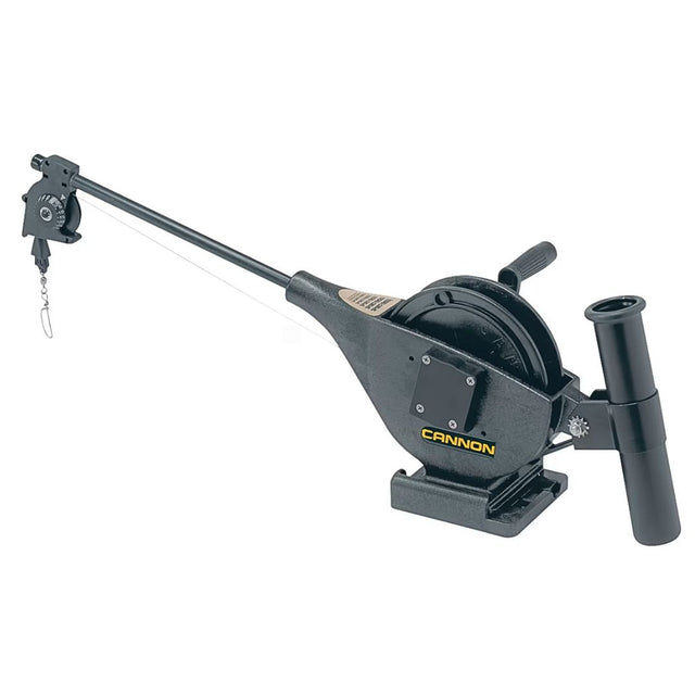 The Cannon® Lake-Troll™ Manual Downrigger is ideal for smaller boats and anglers just beginning to realize the advantage of fishing a downrigger. Built tough to stand up to harsh saltwater conditions, the Lake-Troll Downrigger features an 18" copolymer boom and a vertical spool designed with a clutch/brake system to provide safe, controlled one-handed weight descent. This Cannon Downrigger also features a quick-mount tab-lock base and swivel-head depth counter. Includes line release, tube-style rod holder, and 100' of stainless steel cable. Covered by a manufacturer's limited lifetime warranty.