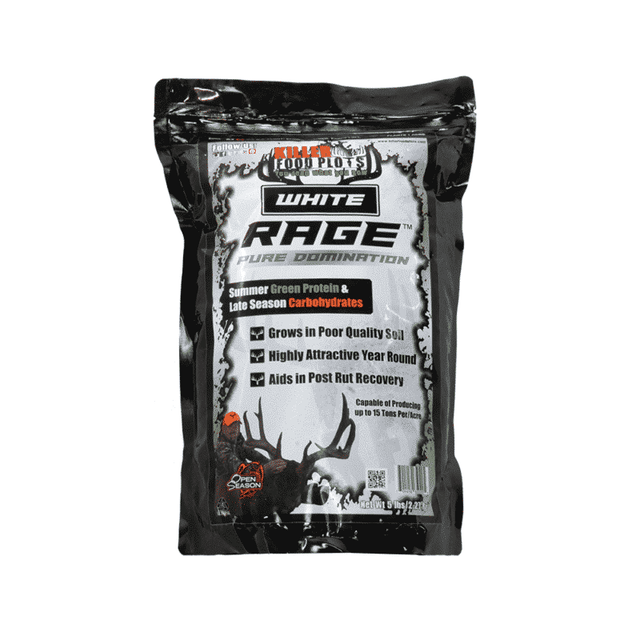 KILLER FOOD PLOTS Premier Food Plot seed blend WHITE RAGE is capable of producing up to 15 Tons Per Acre of Highly Palatable and Digestible Food for your Whitetail Herd.