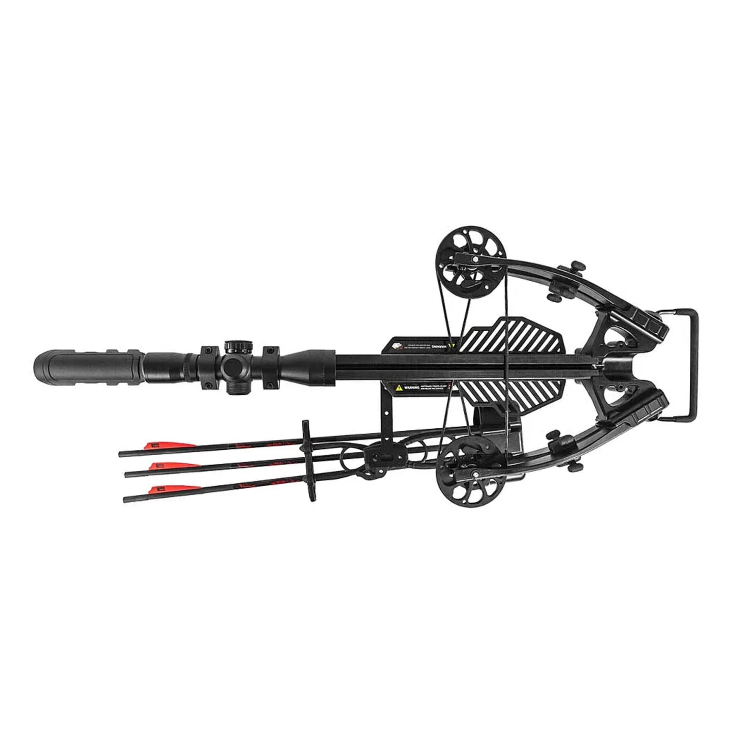- PRO PACKAGE INCLUDED - LUMIX 4x32 IR-E Scope, Sled Rope Cocker, Quiver, (3) 20-inch HYPR Bolts (390 Grains) with Field Tips, Stick of Rail Lube.