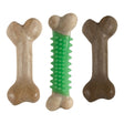 A value pack of 3 safe dog chews that are extremely durable and great tasting. Designed in the shape of a femur bone, and compelling texture for easy grip. Includes 1 each of a yummy chicken and beef flavor, and 1 mint flavor with soft rubber teeth-cleaning nubs that massage gums. Hero Bonetics™ is made of a scientifically developed wood-infused nylon material that is strong enough to last and soft enough not to splinter, making it a safer choice for your dog. Size small for dogs up to 25 lbs.