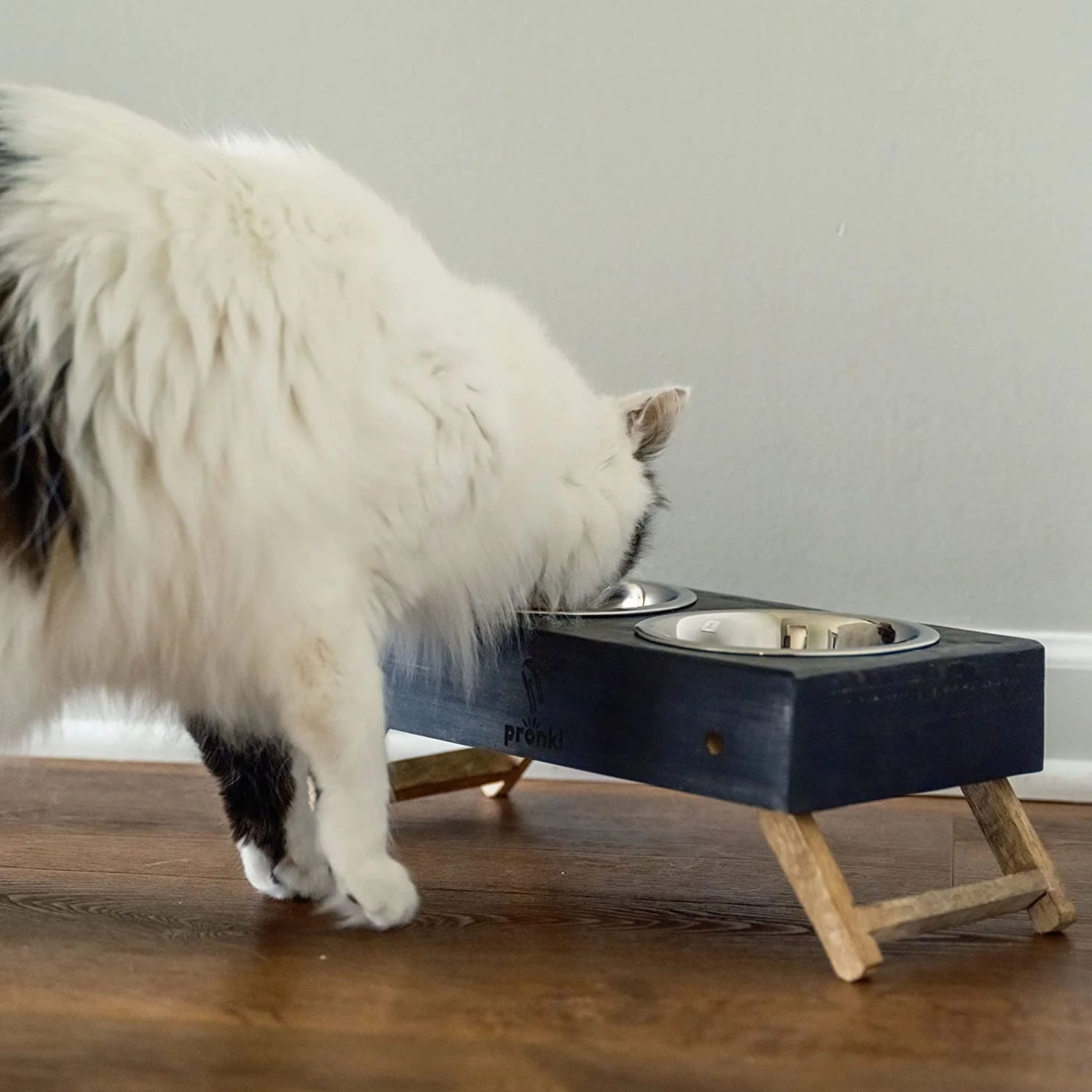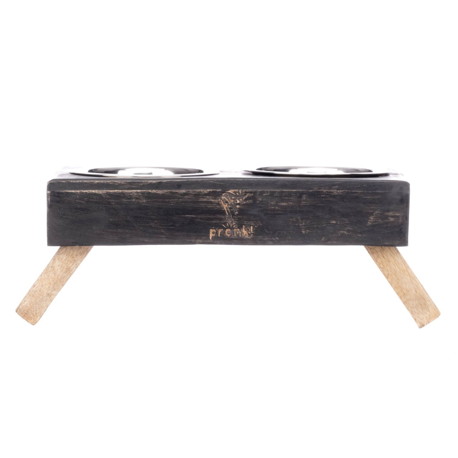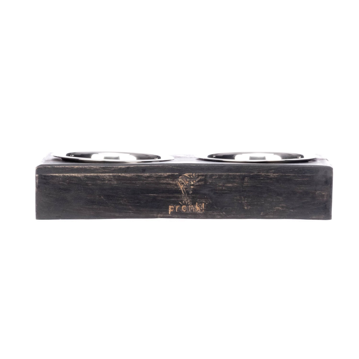 Pronk! Grey Small 12.5 x 5.5 Inch Wood Adjustable Water & Pet Food Feeder