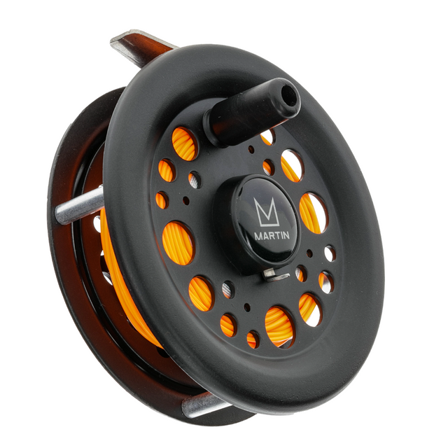 Martin's fly reel features reinforced aluminum spool with push button release. This reel is customizable with a right- or left-hand changeable retrieve and comes with rim control for manipulating the drag. The lightweight aluminum frame and spool have a fly line capacity of 30-yards and can hold up to 50-yards of 20-pound backing.
