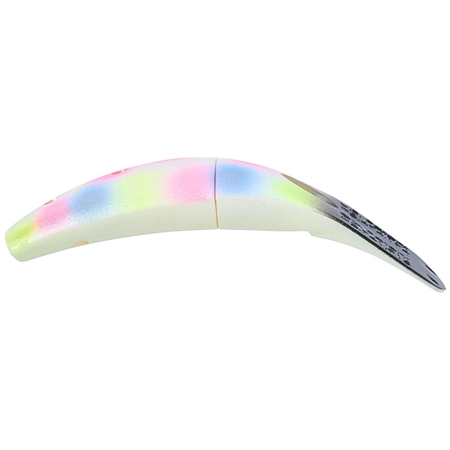 - Produces vibrating, spinning action that simulates a wounded baitfish