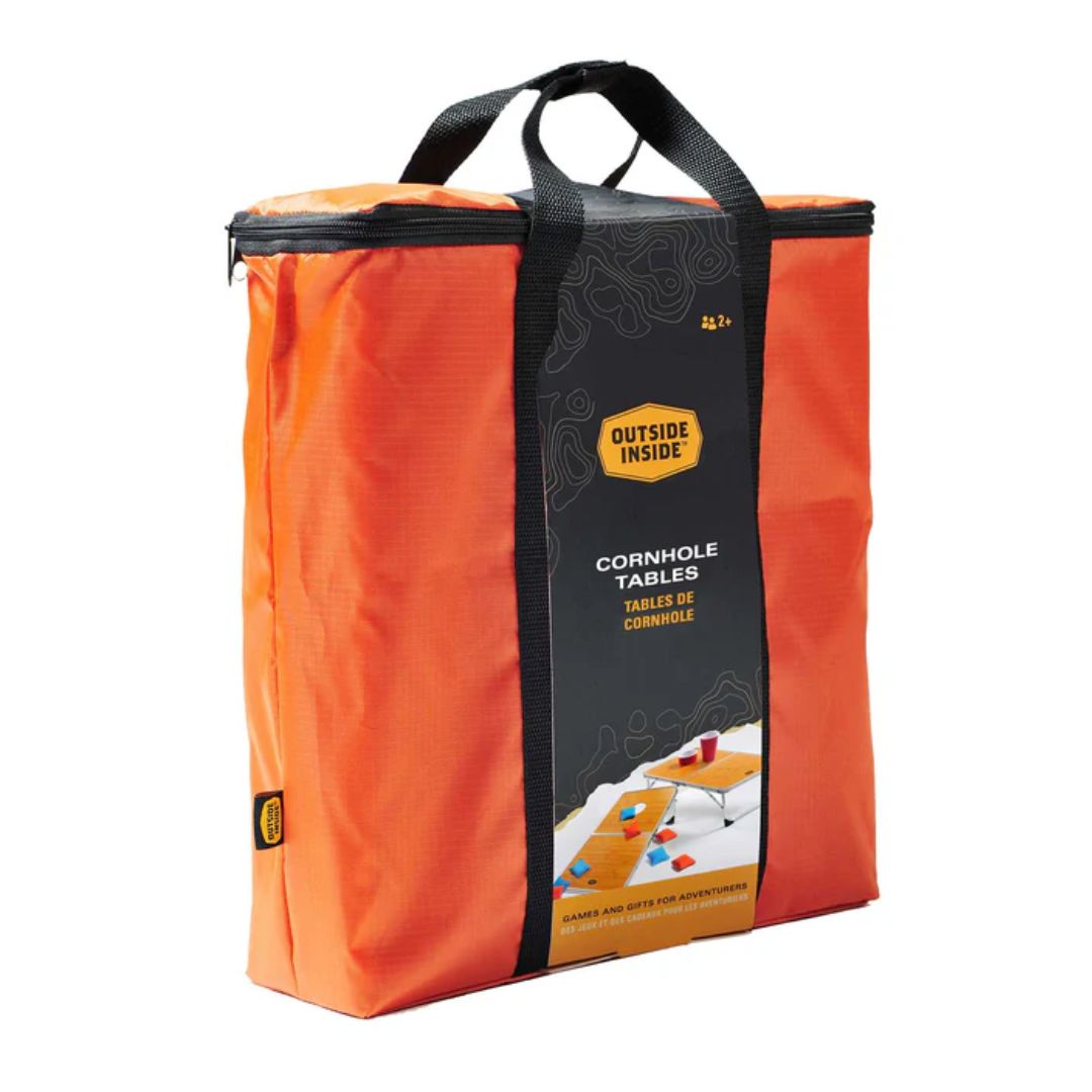 An innovative approach to classic cornhole that features two mid-size game boards with fold-out legs that convert into low camp camp tables. The family fun of cornhole made versatile and convenient for on-the-go adventures. The fun starts here!