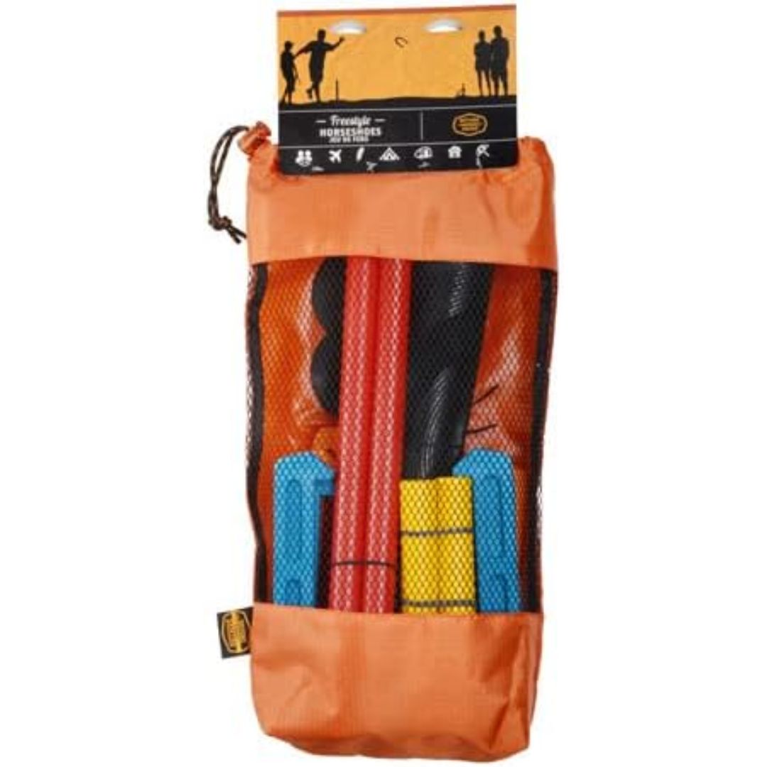 - TAKE IT ANYWHERE: Compact and portable horseshoes game for both adults and kids; perfect for camping, traveling, beach, or backyard fun!