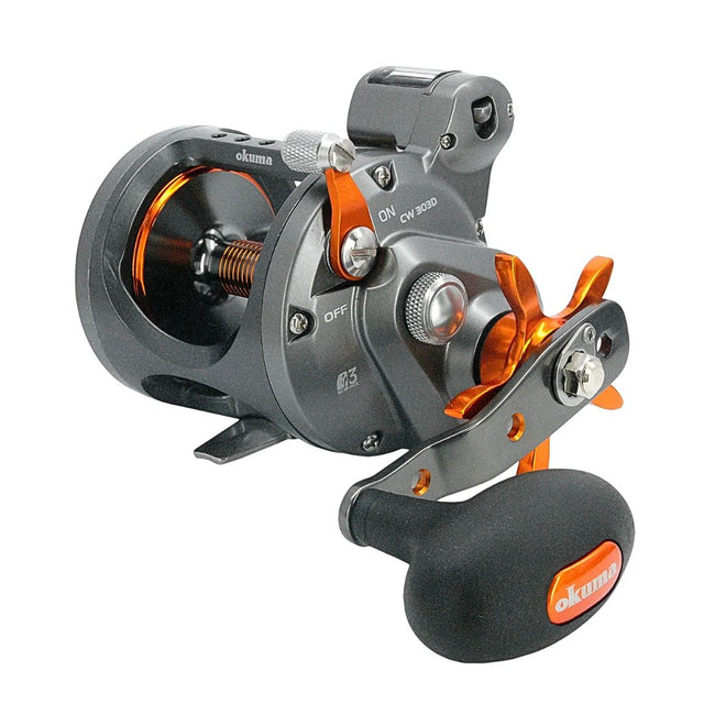 Serving anglers with a premium line counter reel in both right and left hand retrieve, Okuma proudly introduces the Cold Water. The Cold Water family is constructed upon a powerful star drag foundation including heavy-duty machine cut brass gears, dual anti-reverse systems, and a full Carbonite drag system with up to 20-pounds of maximum drag output. The custom line counter includes new Okuma anti-fogging Clear View Technology, and should the counter be overwhelmed by water, an access port allows the interior to be dried completely. The line counter’s reset button has also been recessed and placed on the side of the unit to eliminate errant resets.