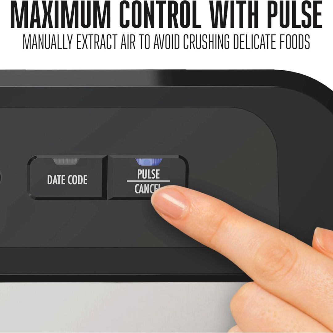 - PULSE BUTTON FOR MAXIMUM CONTROL: The pulse button on the vacuum sealer machine gives you greater control when sealing delicate items like chips, bread, snacks, and fruits and vegetables.