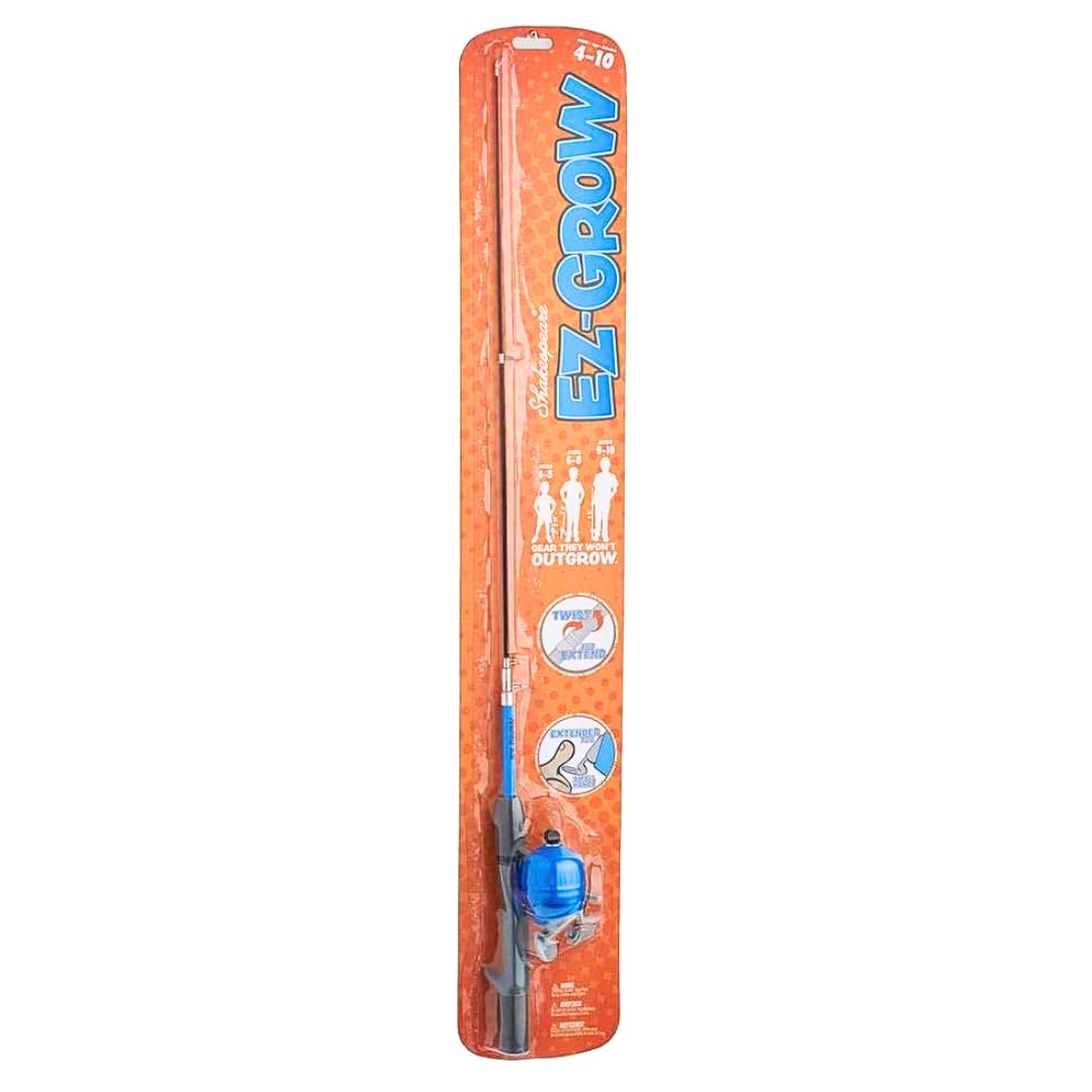 The Shakespeare® EZ-Grow® grows with you for a childhood of fishing fun. Start with a 2'10" rod with oversized handle knob and extended length push button perfect for 4+ little anglers and easily extend rod to 3'7" and 4'5" lengths for up to eight years of use.