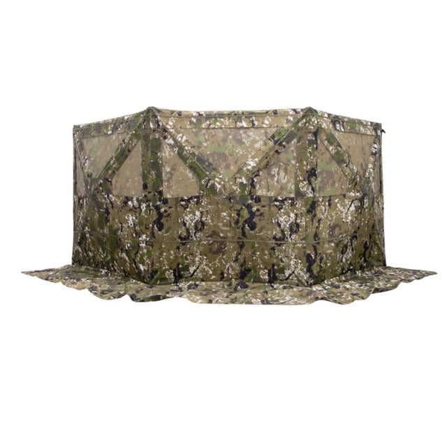 The Face-Off™ Adjustable Panel Blind is the larger, see-through cousin of the Barronett Blinds® Field Shield™. Don’t let its size fool you though, the Face-Off™ still weighs in at only 12 pounds, making it ideal for run-and-gun hunting situations. The Face-Off™ is ready for the elements with its heavy-duty 2-Layer Bonded Fabric and offers superior visibility with a 1-Way Fabric window attachments. The 1-Way Fabric offers you more cover that you can see through from the interior, but prey can’t see though on the exterior. The windows feature noiseless toggle and loop attachments ensuring you can get the perfect shot while remaining concealed. The included heavy-duty adjustable ground stakes and oversized ground skirt offer 16-inches of up and down adjustability which makes the blind perfect for different sized hunters and uneven terrain. Pair the Face-Off ™ with our matching Ground Gobbler Chair and you’re ready for a concealed and comfortable sit.