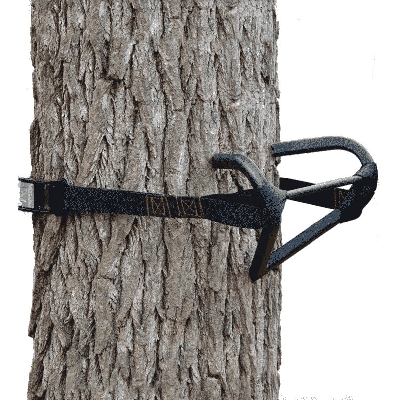 - Cam locks onto the tree for silent stability