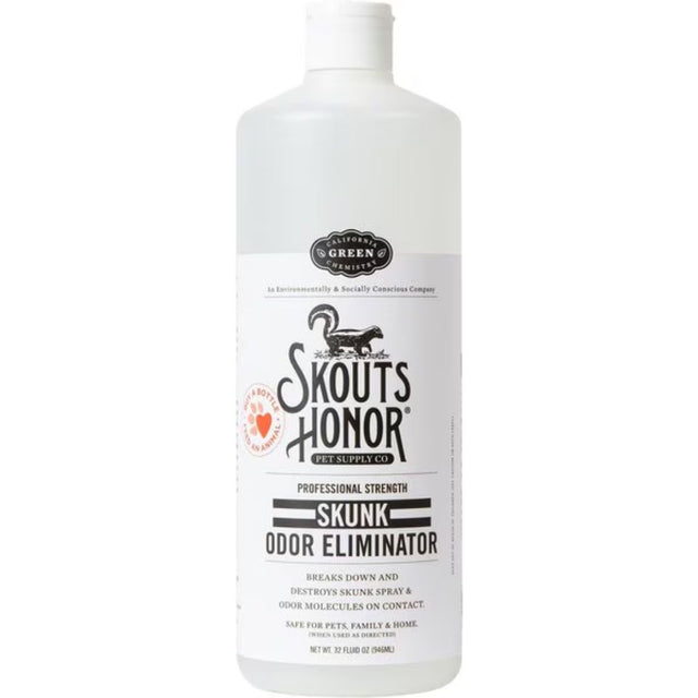 Skunks spray and accidents happen—so the next time they do, come prepared with Skout's Honor Professional Strength Skunk Odor Eliminator! Derived from plants, this eco-friendly spray is safe for surfaces and your furry friend, yet tough enough to handle that harsh skunk smell everyone loathes. The odor eliminator destroys skunk spray and odor molecules on contact so that you and your family don't have to suffer from unruly stink. So the next time your pal tries to befriend a skunk, Skout's Honor has your family and home covered!