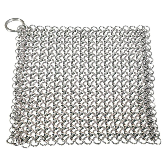 Keep your cast iron clean with the Camp Chef Chain Mail Scrubber. This 7 X 7-inch scrubber is dishwasher safe and cleans cast iron, steel griddles, and other cookware. Made with 316 grade stainless steel.
