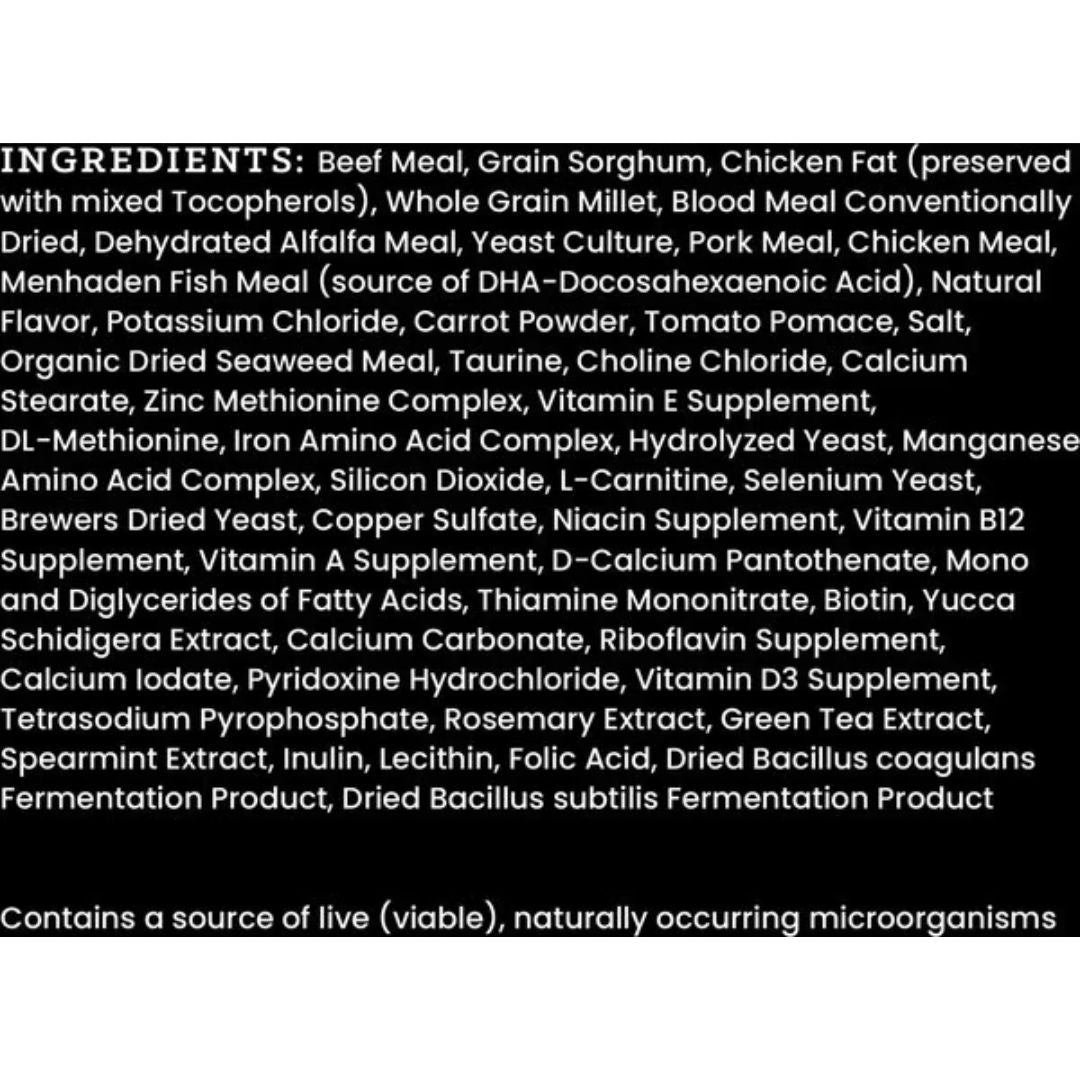 • Made of 88% meat protein with premium-quality beef, chicken, and pork meals.