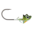 The VMC® Swimbait Jigs ad the final touch to the illusion of a live minnow. Designed to mimic a baitfish head, they feature flared gills,3D holographic eyes and a concave head that allows your swimbait to nest up tight to the jig. Equipped with a forged shank, hi-carbon steel, 1X strong hook and a double wire keeper to ensure your bait stays on.